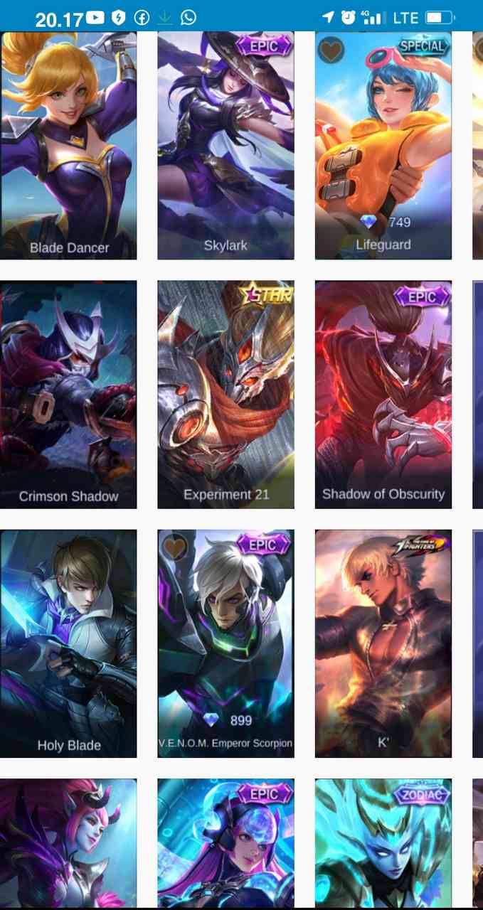 - Skin Hero Mage: Virus, Gemini-Zhadow (Zodiac), Mecha Baby (Epic), Lightborn – Inspirer, Evos Legends, Double Identity.