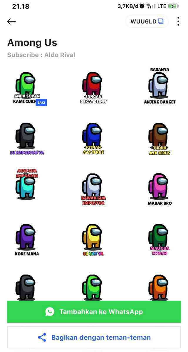 - Secara otomatis semua koleksi stiker WA Among Us bahasa Indonesia akan terbuka.
