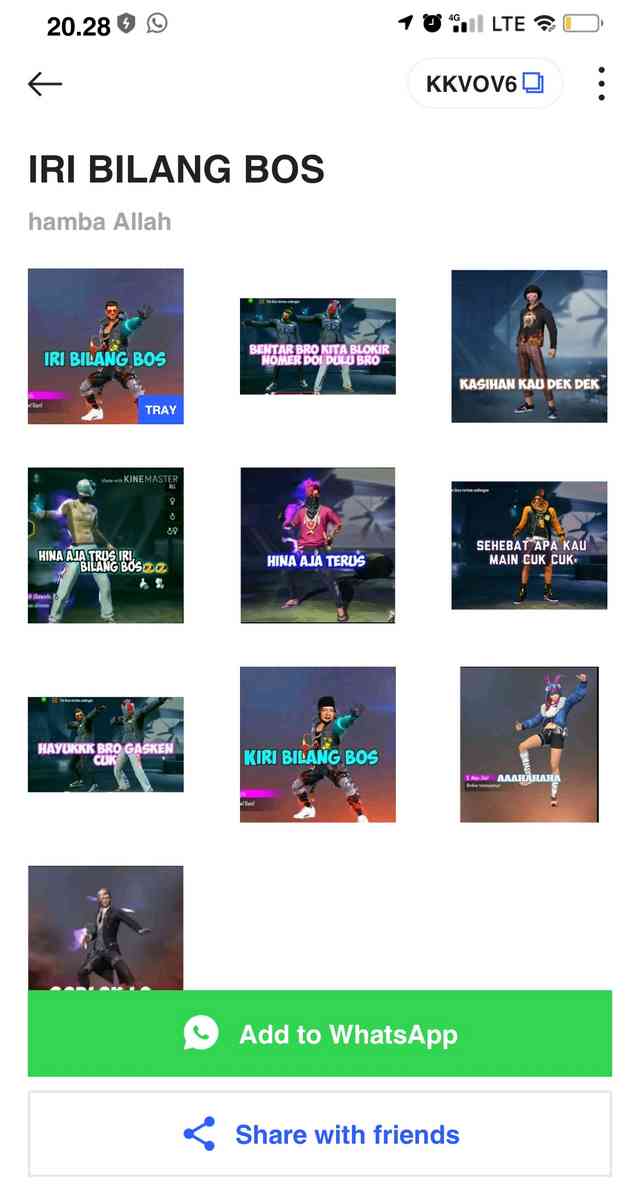 Tidak ada. Saya belum menemukan paket nama stiker iri bilang bos di Play Store.